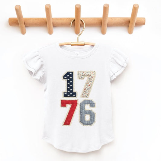1776 Stacked Faux Patchwork Flutter Sleeve Graphic T-Shirt